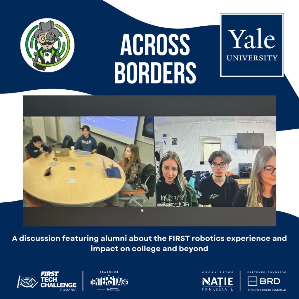 From the 7th to the 8th of March, the team infO(1)Robotics #15993 were delighted to kick off the inaugural part of the Across Borders event. An online experience where they had the delightful opportunity to participate in online meetings with different alumni over the world. During this time, they had the privilege of hosting a diverse array of FIRST alumni, fostering interesting discussions on their collective experiences within the FIRST program. Notably, they were honored to have two esteemed alumni from Romania join them: Alex Sandulescu representing Alumnus infO(1)Robotics, and Briana Stan, the distinguished winner of the 2022 Deans’s List award. As they reflect on the insights shared and connections made, they eagerly anticipate the unfolding of their next chapter in this remarkable worldwide journey. Stay tuned for more exciting updates and collaborations ahead.From the 7th to the 8th of March, the team infO(1)Robotics #15993 were delighted to kick off the inaugural part of the Across Borders event. An online experience where they had the delightful opportunity to participate in online meetings with different alumni over the world. During this time, they had the privilege of hosting a diverse array of FIRST alumni, fostering interesting discussions on their collective experiences within the FIRST program. Notably, they were honored to have two esteemed alumni from Romania join them: Alex Sandulescu representing Alumnus infO(1)Robotics, and Briana Stan, the distinguished winner of the 2022 Deans’s List award. As they reflect on the insights shared and connections made, they eagerly anticipate the unfolding of their next chapter in this remarkable worldwide journey. Stay tuned for more exciting updates and collaborations ahead.