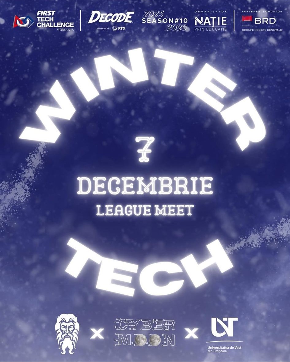 On December 7th, 2025, the West University of Timișoara will host the highly anticipated WinterTech League Meet, organized by Atlas CNB x Cybermoon. This winter-themed robotics event promises a day full of creativity, learning, and hands-on innovation for students, mentors, and tech enthusiasts alike.