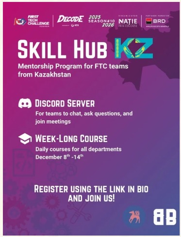 A new chapter of international collaboration is beginning for FIRST Tech Challenge teams in Kazakhstan. SKILL HUB KAZAKHSTAN, a mentorship program crafted jointly by Team Broboți (Romania) and Team Panheya (Kazakhstan), will run from December 8–14, offering a concentrated week of learning, guidance, and skill-building for teams eager to elevate their performance this season. ✨