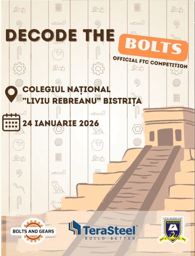 The event will take place on January 24 in Bistrița, Bistrița-Năsăud County, at “Liviu Rebreanu” National College, and will bring together up to 20 participating teams. Decode The Bolts offers a dynamic setting in which students can tackle a variety of challenges, test their strategies, and work effectively as a team, while also strengthening connections within the FTC community.
