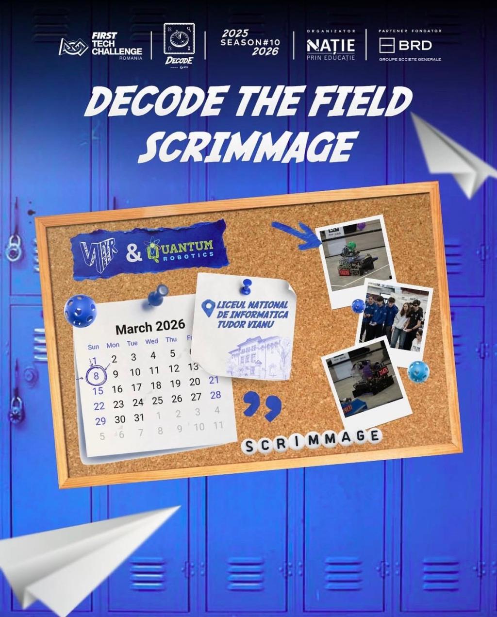 On March 8, the robotics community gathered at Colegiul Național de Informatică „Tudor Vianu” for the exciting “Decode the Field” Scrimmage, organized by Quantum Robotics 14270. The event brought together passionate students, mentors, and technology enthusiasts for a day dedicated to innovation, collaboration, and competitive robotics.