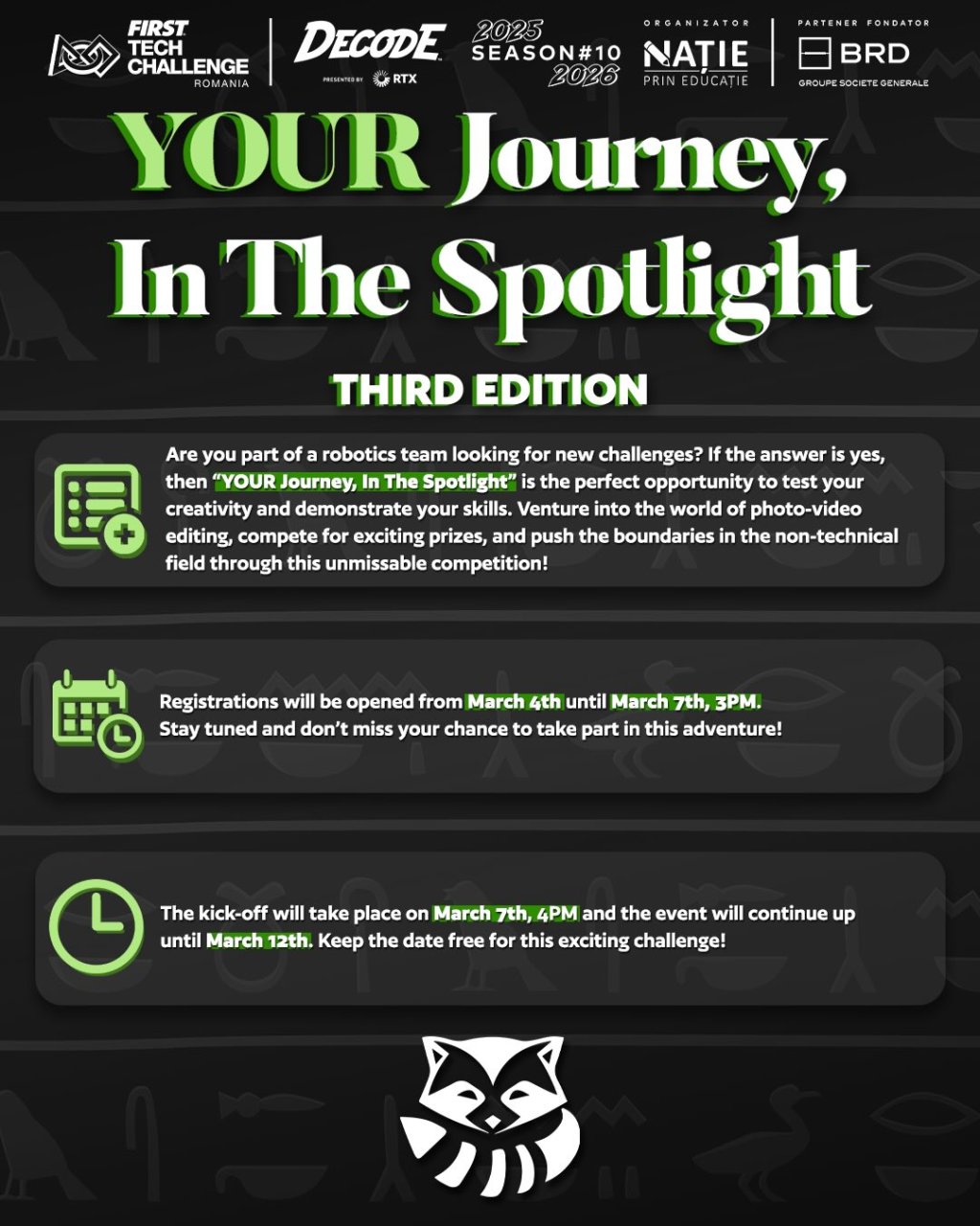 FIRST Tech Challenge teams are once again invited to step beyond the competition field and into the creative arena as the third edition of “YOUR Journey, In The Spotlight” makes its return. The contest highlights the artistic and promotional side of robotics, offering participants a platform to express their team story through visual media.